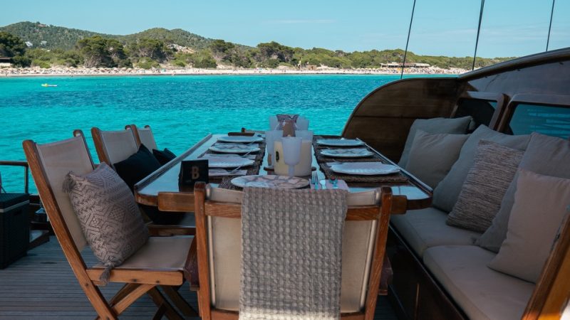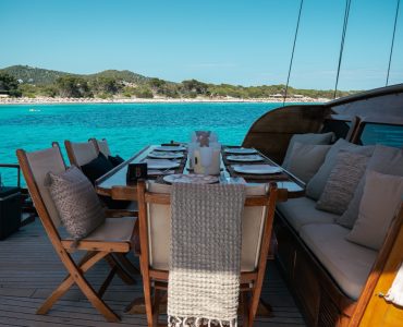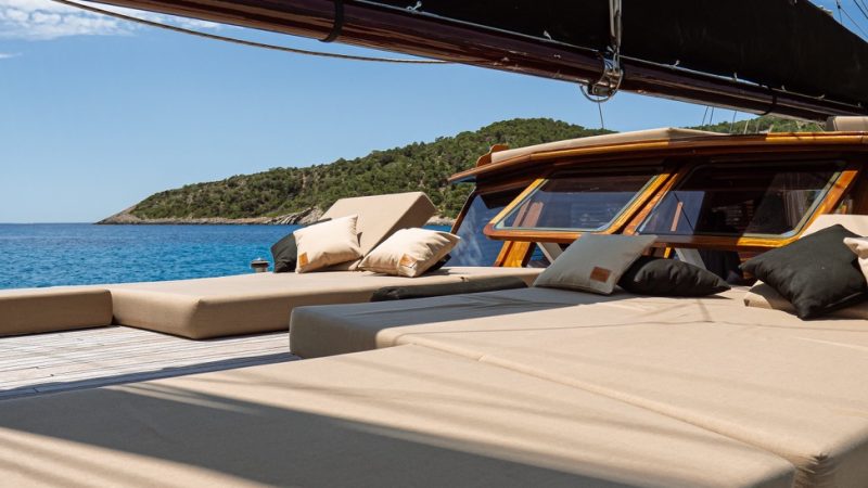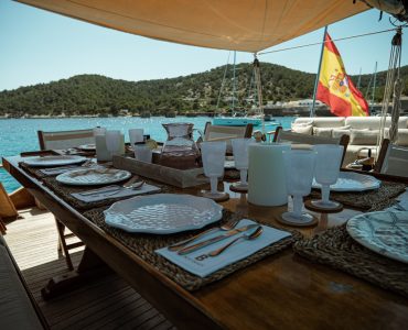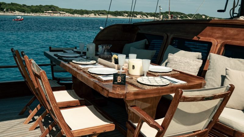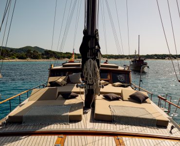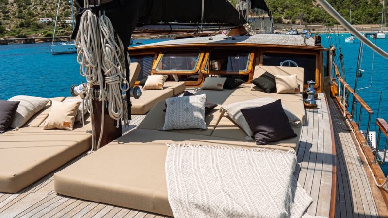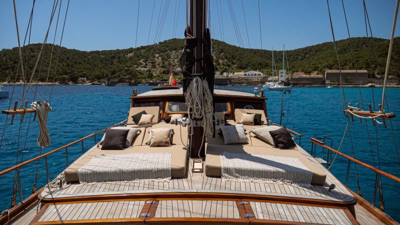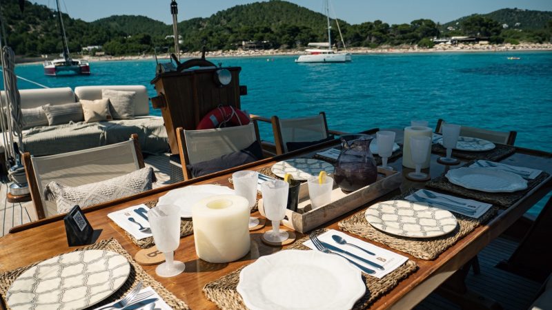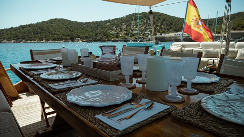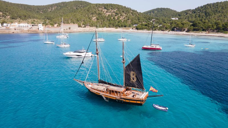 Ideal boat to discover the best coves of Ibiza & Formentera with wide spaces and all the luxury you deserve. La Schooner Beso belongs to the Beso Beach group. You can anchor in front of the restaurant and enjoy on board the gastronomy of El Beso in the middle of the sea and exclusively for your group of maximum 12 people. The crew will take care of you and offer a unique experience at all times. It has 4 double cabins with bathroom to extend the day of sailing excursion and you can stay to sleep for a minimum of two nights, maximum 8 people. Fully restored in 2023