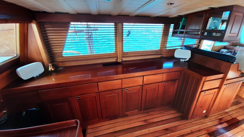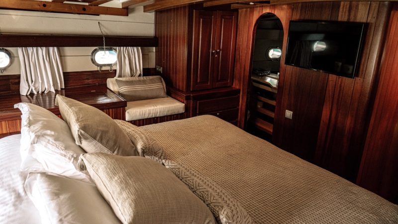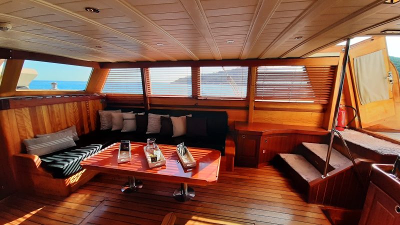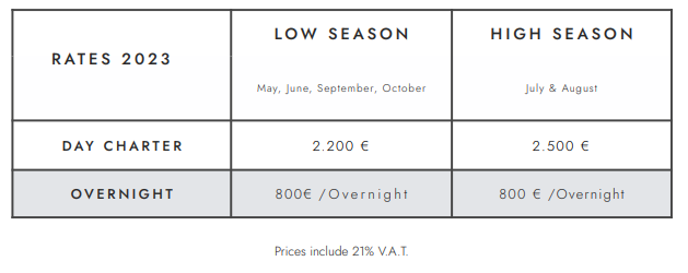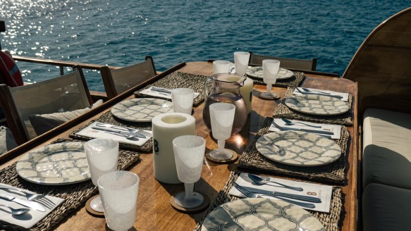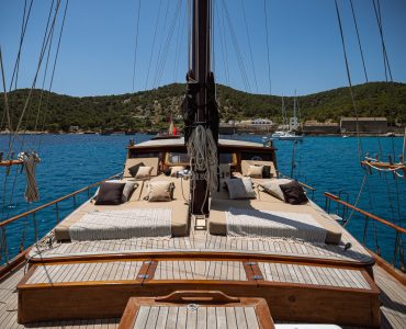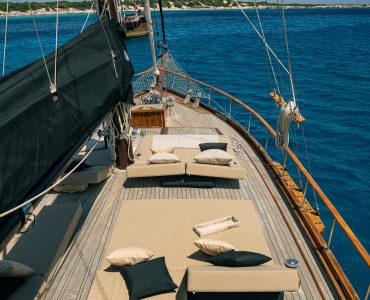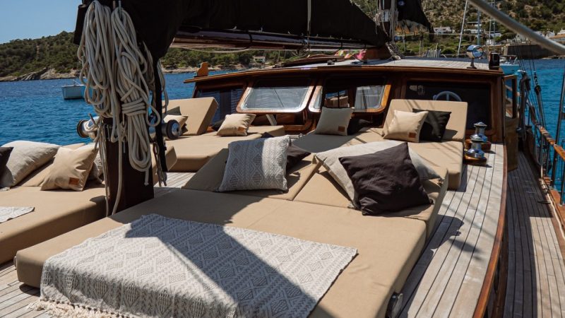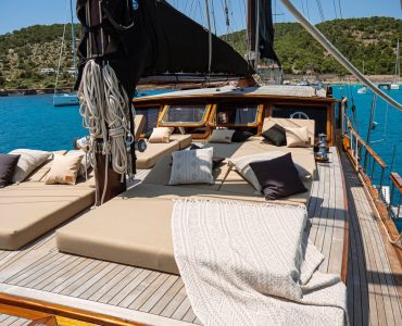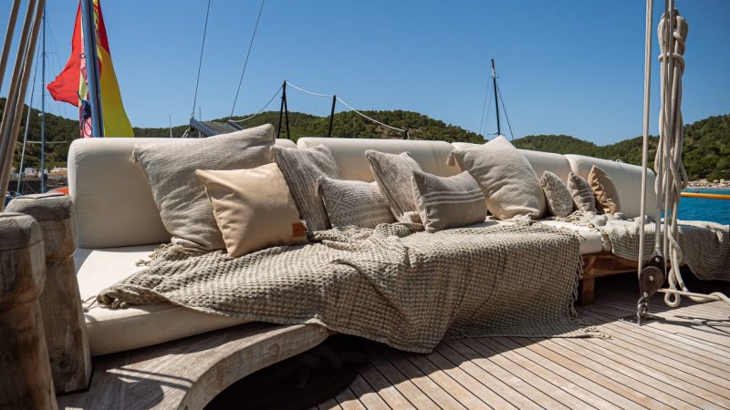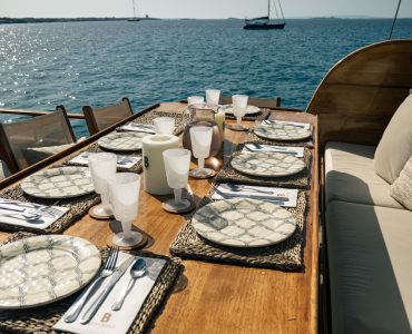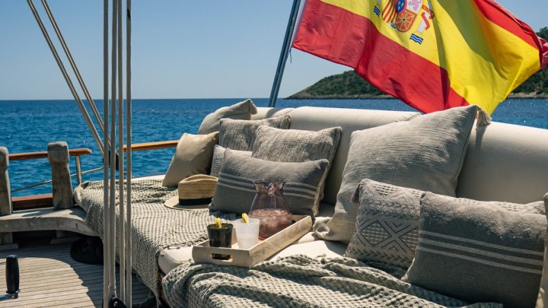 Ideal boat to discover the best coves of Ibiza & Formentera with wide spaces and all the luxury you deserve. La Schooner Beso belongs to the Beso Beach group. You can anchor in front of the restaurant and enjoy on board the gastronomy of El Beso in the middle of the sea and exclusively for your group of maximum 12 people. The crew will take care of you and offer a unique experience at all times. It has 4 double cabins with bathroom to extend the day of sailing excursion and you can stay to sleep for a minimum of two nights, maximum 8 people. Fully restored in 2023